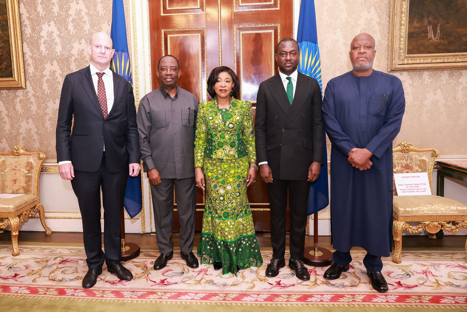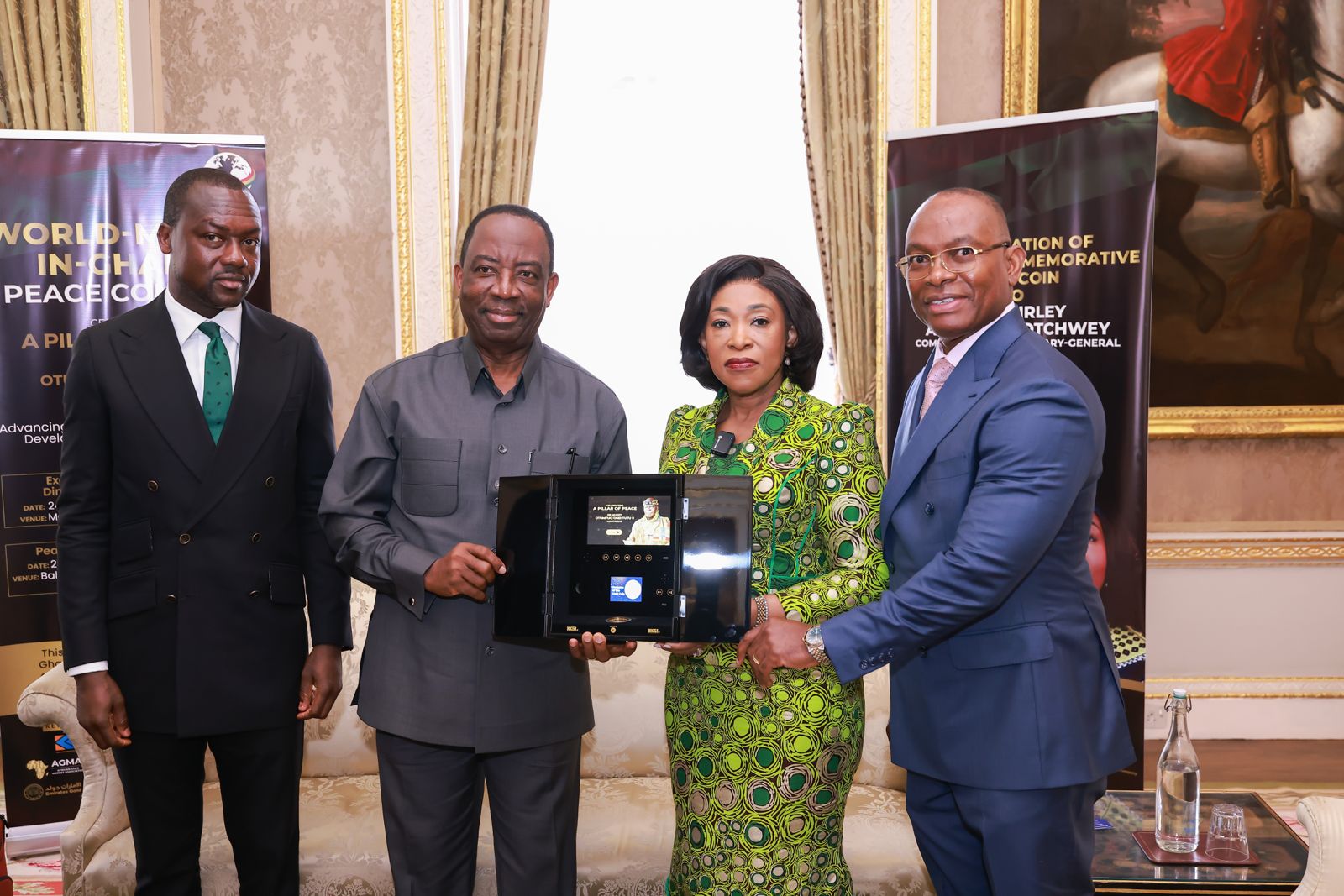A delegation, which included Alex Dadey, Executive Chairman of KGL Group; Richard Adjei Mensah Ofori Atta, Executive Chairman of E ON 3 Group; Kwami Sefa Kayi, a broadcast journalist and media consultant to E ON 3 Group; and Daniel Weitmann, founder of Golden Suisse, presented the gold coin to the Secretary-General.