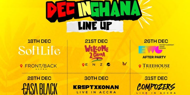 The celebrations will kick off on December 18 with SoftLife at Front/Back—Accra, setting the tone for a month of premium entertainment. Just a few days later, on December 21, Akwaaba UK brings the iconic Welcome 2 Ghana party to Enzo, a staple event that draws both locals and returnees from across the globe.