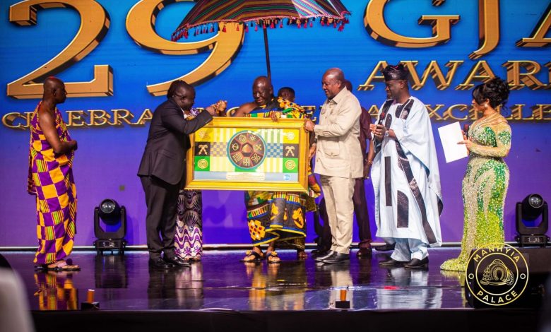 The honour was bestowed upon the revered Asante Monarch during the 29th GJA Media Awards, held at the Manhyia Palace in Kumasi on Saturday, November 8, 2025.
