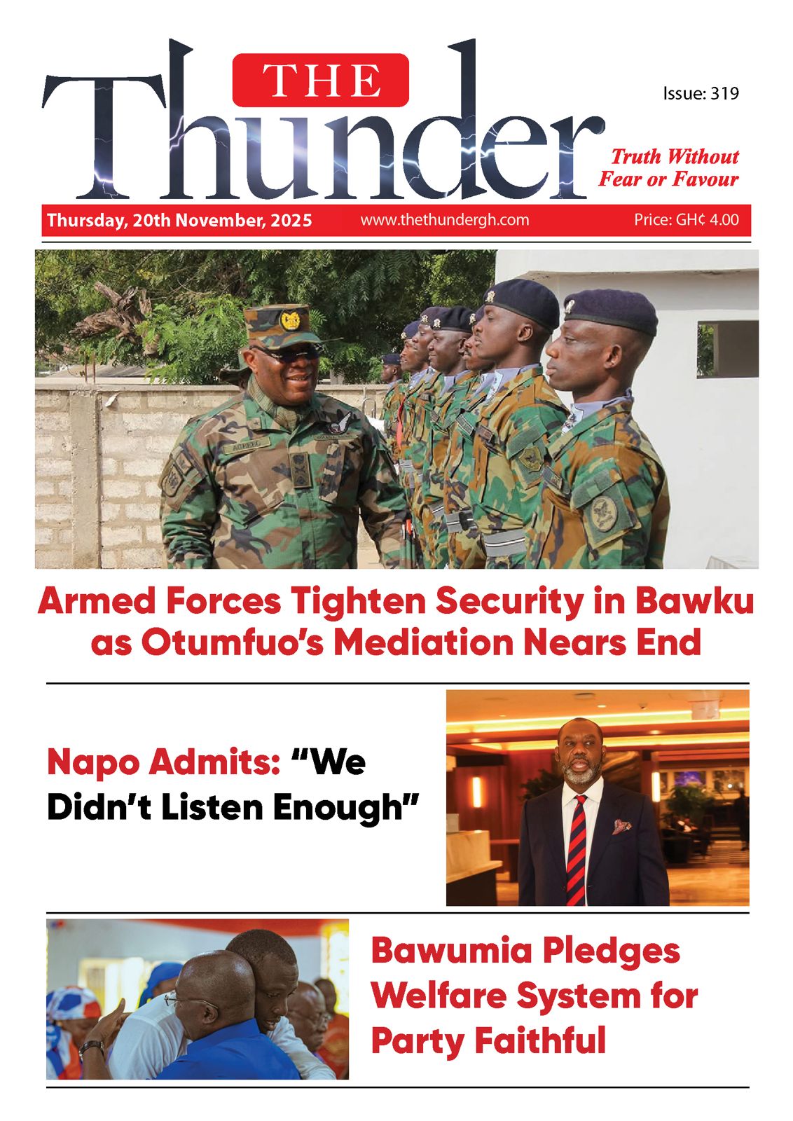 Home/Newspaper Headlines/Thunder Newspaper Headlines: Thursday November 20, 2025 Newspaper Headlines Thunder Newspaper Headlines: Thursday November 20, 2025 3 hours ago Less than a minute Facebook Twitter LinkedIn Tumblr Pinterest Reddit VKontakte Odnoklassniki Pocket TagsGhana News headline The Thunder Gh News 3 hours ago Less than a minute Facebook Twitter LinkedIn Tumblr Pinterest Reddit VKontakte Odnoklassniki Pocket Share Facebook Twitter LinkedIn Tumblr Pinterest Reddit VKontakte Odnoklassniki Pocket Share via Email Print