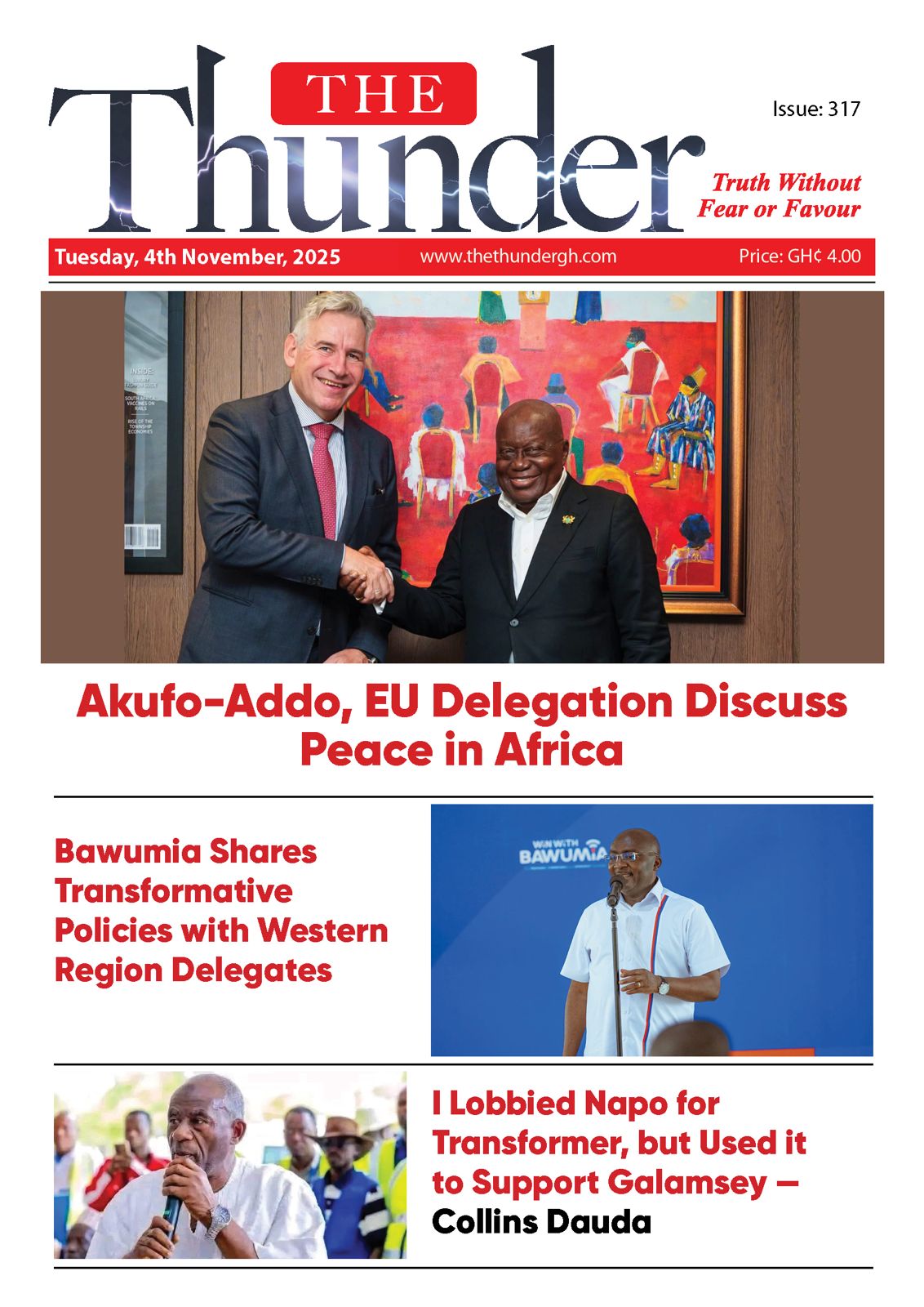Home/Newspaper Headlines/Thunder Newspaper Headlines: Tuesday November 4, 2025 Newspaper Headlines Thunder Newspaper Headlines: Tuesday November 4, 2025 6 hours ago Less than a minute Facebook Twitter LinkedIn Tumblr Pinterest Reddit VKontakte Odnoklassniki Pocket TagsGhana News headline The Thunder Gh News The Thunder Gh News Thunder Newspaper Headlines 6 hours ago Less than a minute Facebook Twitter LinkedIn Tumblr Pinterest Reddit VKontakte Odnoklassniki Pocket Share Facebook Twitter LinkedIn Tumblr Pinterest Reddit VKontakte Odnoklassniki Pocket Share via Email Print